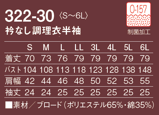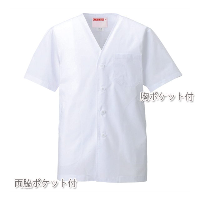 *長袖(袖口ゴム)の衿なし調理衣もございます。