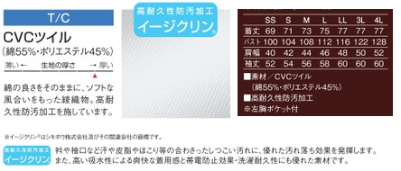 高耐久防汚加工(イージークリン):襟や袖口など汗や皮脂やほこりなどの合わさったしつこい汚れに、優れた汚れ落ち効果を発揮します。