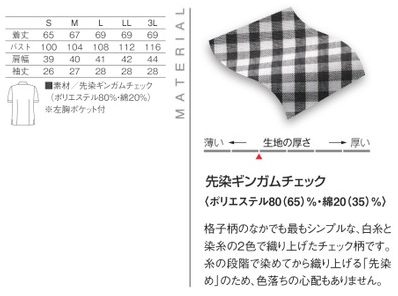 ●素材:先染ギンガムチェック(ポリエステル65%、綿35%)