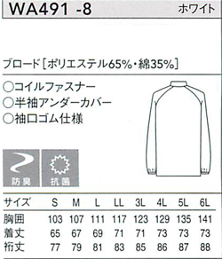 コートの着丈はヒップまでをしっかりと覆うため、低温の職場や長時間の水仕事にも腰部を冷やすことが無く、また身体のシルエットが目立たず体型をカバーできるので、女性の方にも安心です。