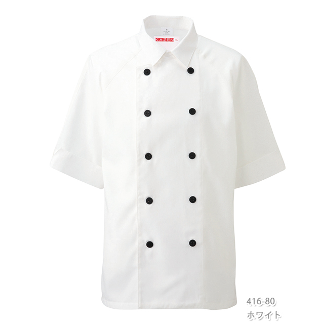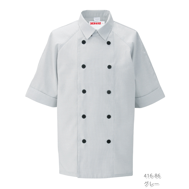 416 カゼン コックシャツ 五分袖 男女兼用 台衿付き カフス仕立ての袖 KAZEN サービス フードユニフォーム フードサービス 食品 制服 レストラン 飲食 ホテル カラー ユニセックス 半袖 5分袖 ホワイト グレー