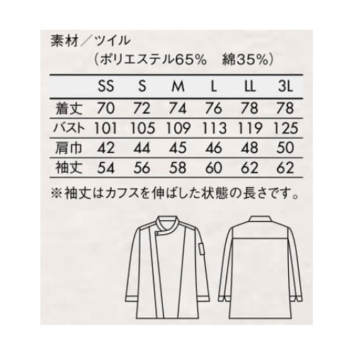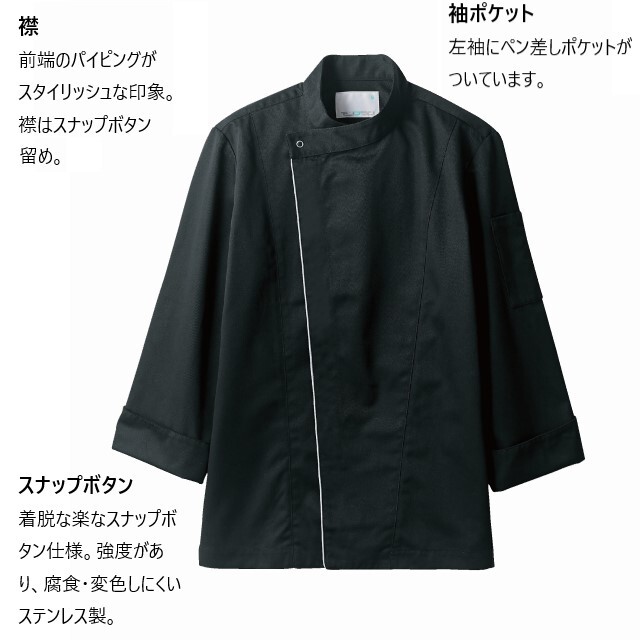 6-1053 映画 グランメゾン・パリ 着用 住商モンブラン コックコート 男女兼用 長袖 黒 ブラック MONTBLANC ユニセックス 飲食店 カフェ レストラン サロン 厨房 キッチン