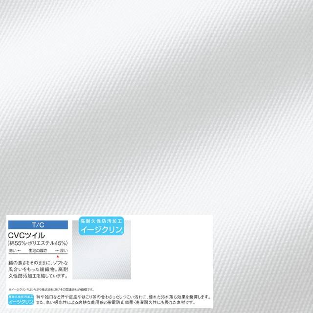 高耐久防汚加工(イージークリン):襟や袖口など汗や皮脂やほこりなどの合わさったしつこい汚れに、優れた汚れ落ち効果を発揮します。
