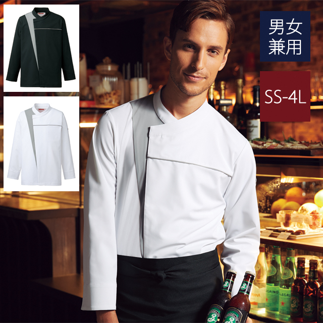 616 カゼン コックコート 長袖 男女兼用 ホワイト ブラック 制菌加工 シャツ 制服 カフェ レストラン 飲食 ホテル シェフ 調理師 ソムリエ フロアー スタッフ サービス フード ユニフォーム フードサービス KAZEN 食品 ユニセックス 大きいサイズ