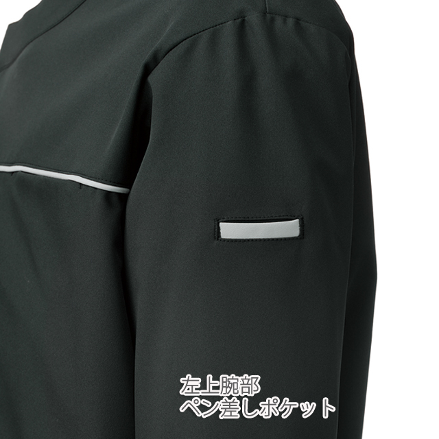 ●特徴:左胸インナーポケット、ペン差しポケット(左袖)、袖口スリット、