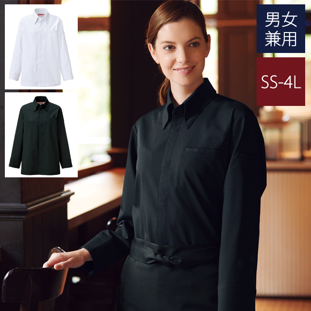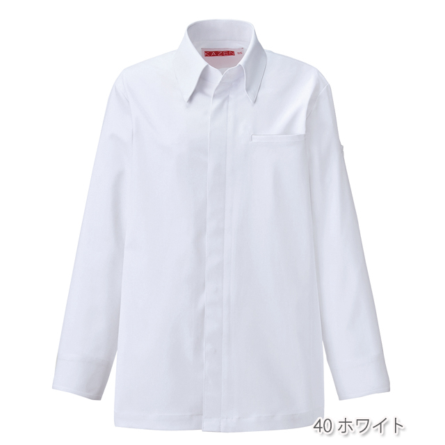 618 カゼン 衿付き コックコート 長袖 男女兼用 ホワイト ブラック 制菌加工 シャツ 制服 カフェ レストラン 飲食 ホテル シェフ 調理師 ソムリエ フロアー スタッフ サービス フード ユニフォーム フードサービス KAZEN 食品 ユニセックス 大きいサイズ