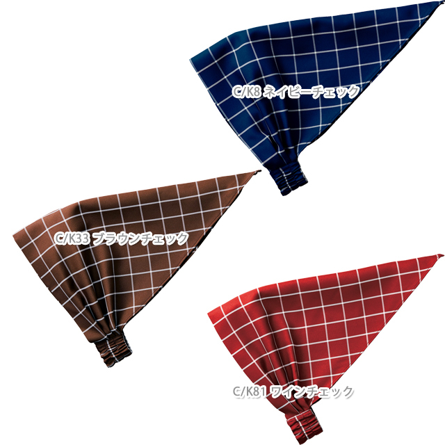 折り込まない状態では三角巾として着用できます。後ろはゴム仕様。