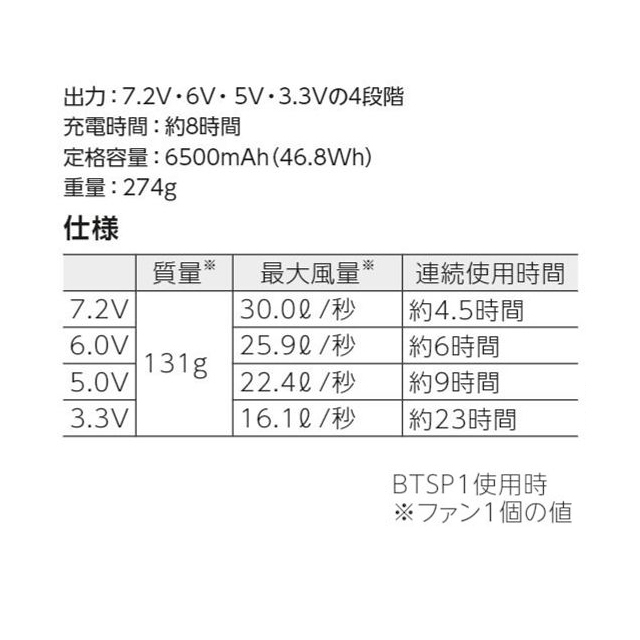 ●内容:空調服バッテリー(BTSP1)・バッテリーケース・空調服ケーブル・急速AC充電アダプター・空調服ワンタッチファン ブラック×ブルー(2個)
